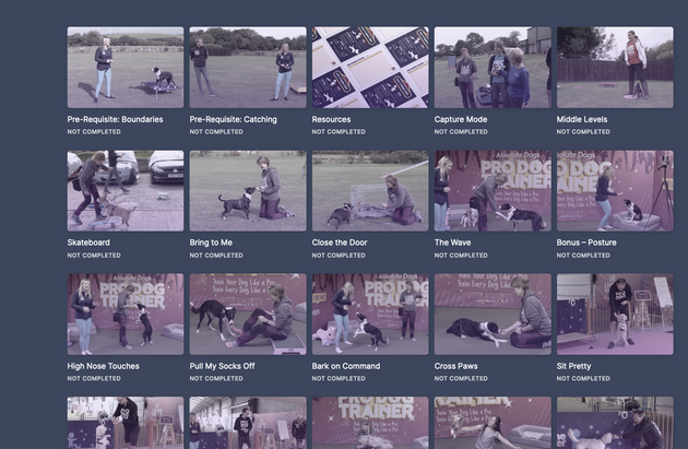 Go to each lesson, Click PLAY, and dive into expert trick training demonstrations.